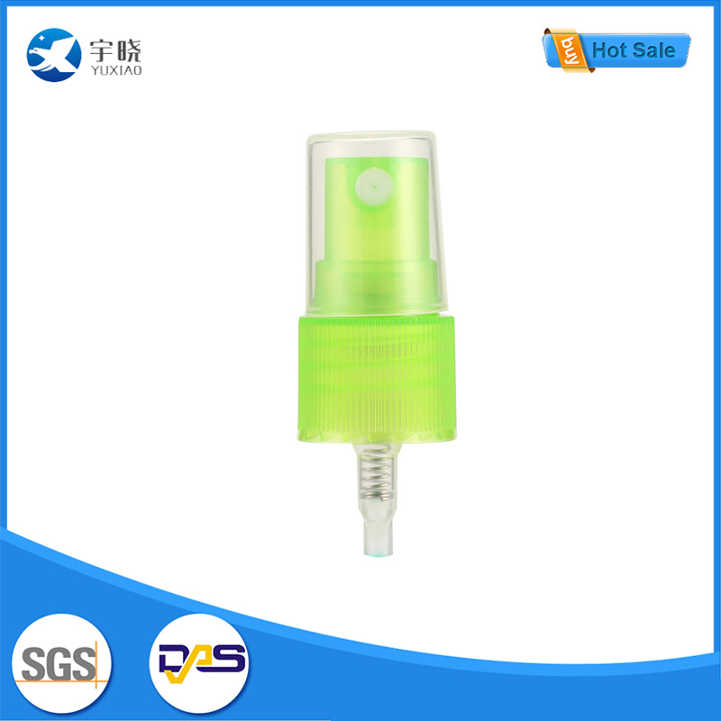 Насос-распылитель из зеленого пластика для мелкодисперсного тумана с прозрачной крышкой — это профессиональный компонент, широко применяемый в системах упаковки косметической продукции.